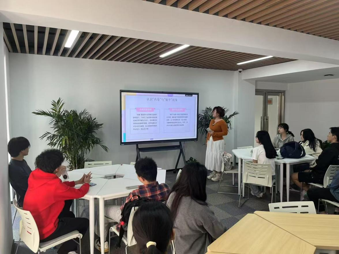 自由讨论环节,气氛热烈。季峰同学称“内卷”压力大,有时会选择“躺平”逃避。有同学回应,“内卷”不可怕,可怕的是盲目竞争,应调整心态、制定合理目标,专注于自身能力提升。同学们还结合专业学习、社团活动、职业规划等,深入探讨如何避免过度“内卷”、保持积极态度、拒绝“躺平”。另有同学提到,大学生要正确看待“躺平”与“内卷”,学会自我调节、保持良好心态,充分利用大学资源提升综合素质。