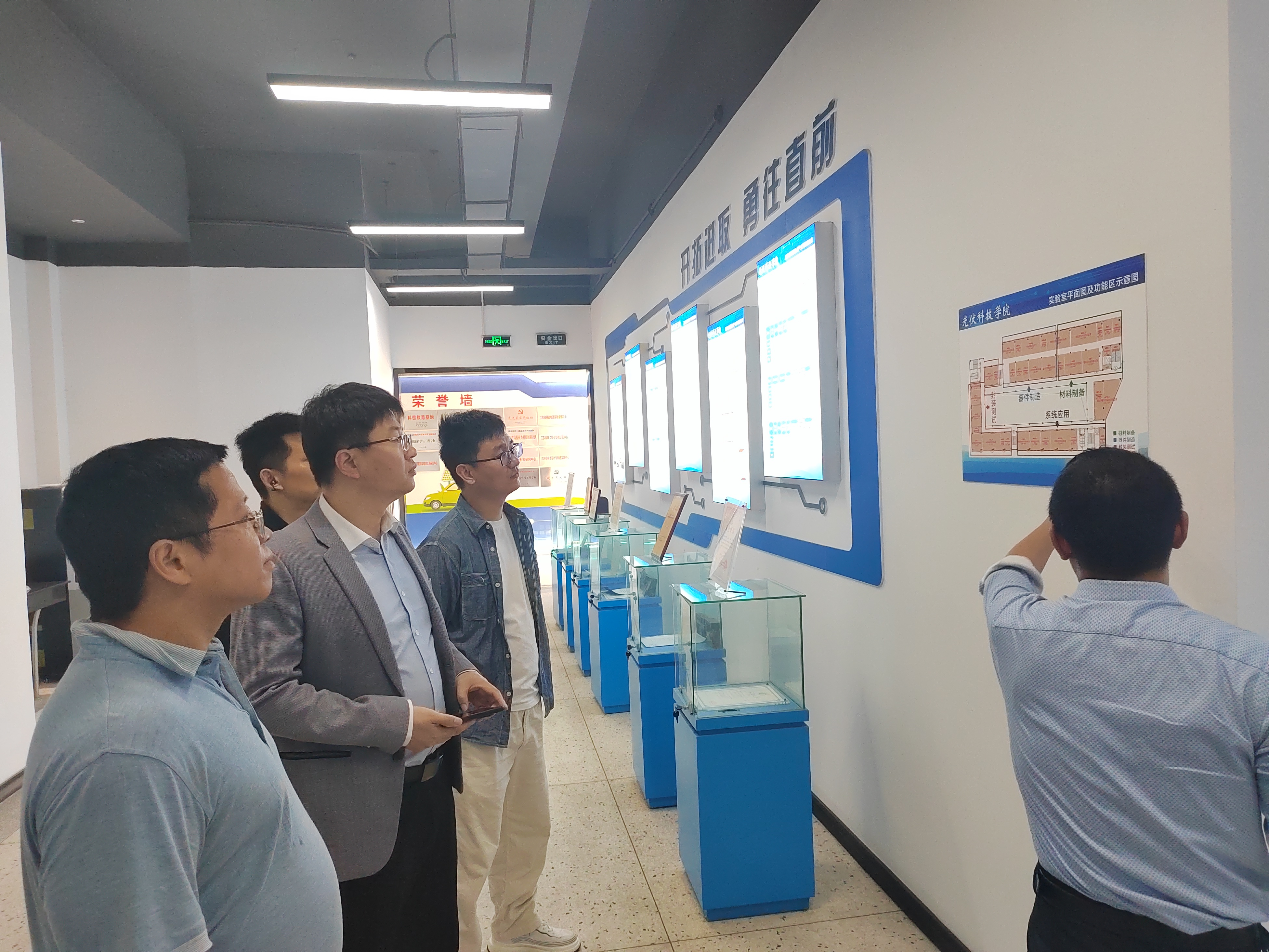 2025 年 4 月 25 日,由实验室与设备管理处处长陈国良、资产处副处长蔡春雷、电气学院实验中心主任(光伏电池实验室建设负责人)许亚军、电气学院张宇老师组成的调研团队,前往苏州工学院电子信息工程学院(光伏科技学院),开展光伏电池实验室建设调研,旨在汲取先进经验,为我校光伏电池实验室建设注入新活力。
