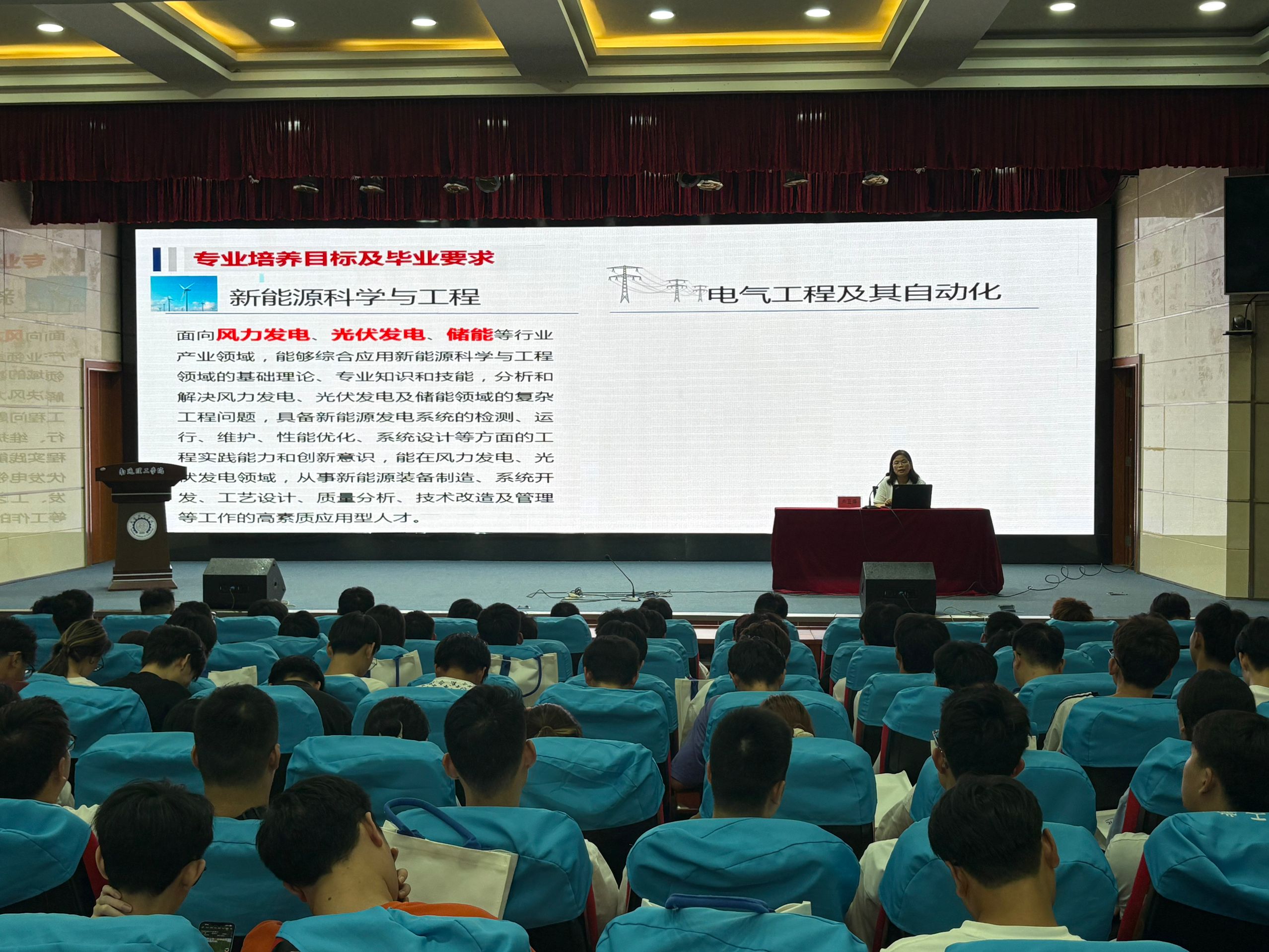 8月28日晚,电气与能源工程学院新生专业引航与职业规划教育活动于行政楼小礼堂顺利举行。学院副院长卢卫萍担任本次活动主讲人,学院党总支副书记、副院长张小顺,分团委副书记刘婧雯以及全体转本新生参加活动。
