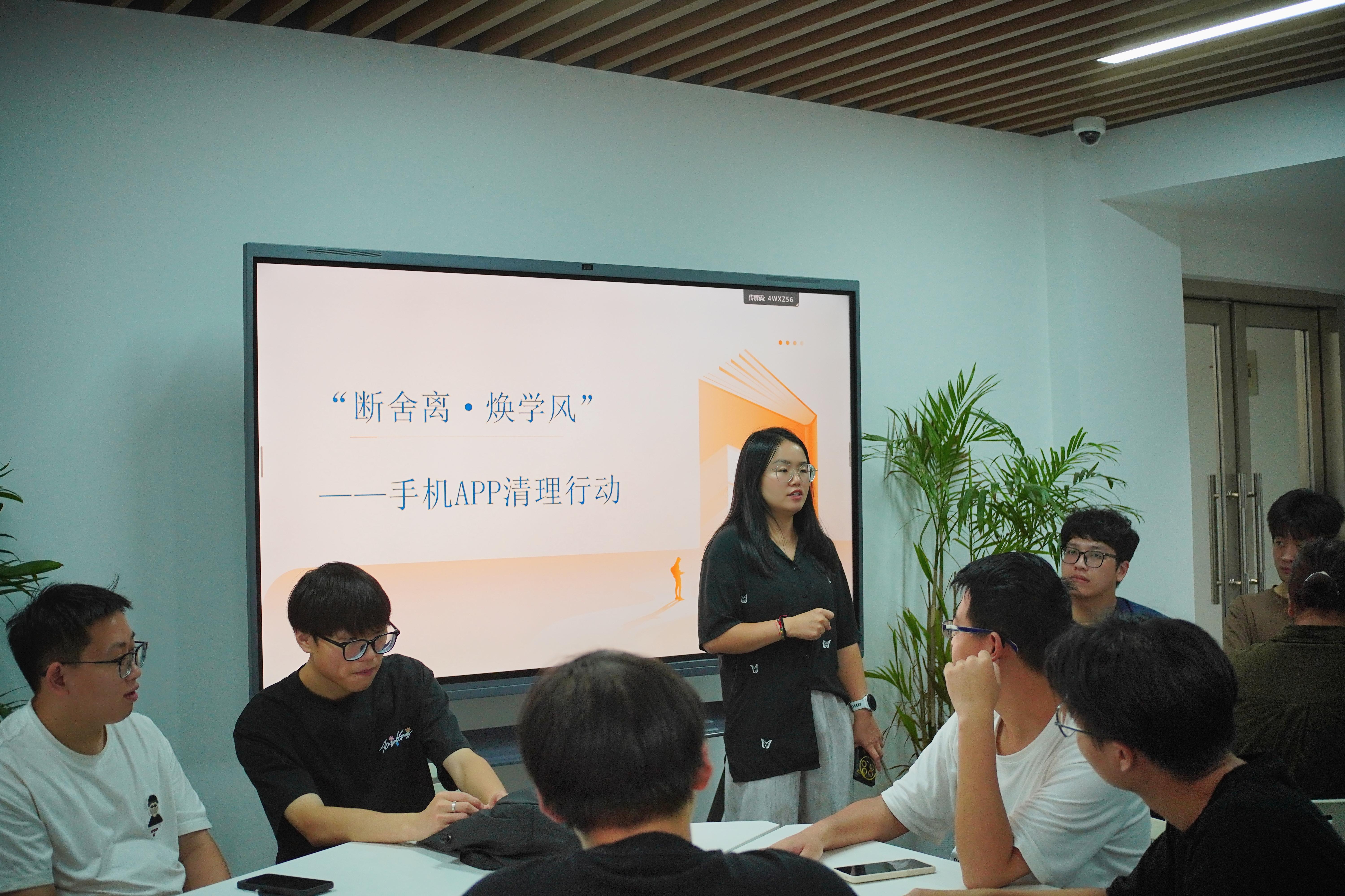 为引导学生合理使用手机,摆脱“数字沉迷”,营造优良学风,9月24日下午,电气与能源工程学院在翰墨社区成功举办“断舍离,焕学风”手机APP清理主题活动。学院辅导员陈丹丹老师主持此次活动,同学们积极报名参与,共同开启一场“净化手机空间、重塑时间管理”的实践行动。