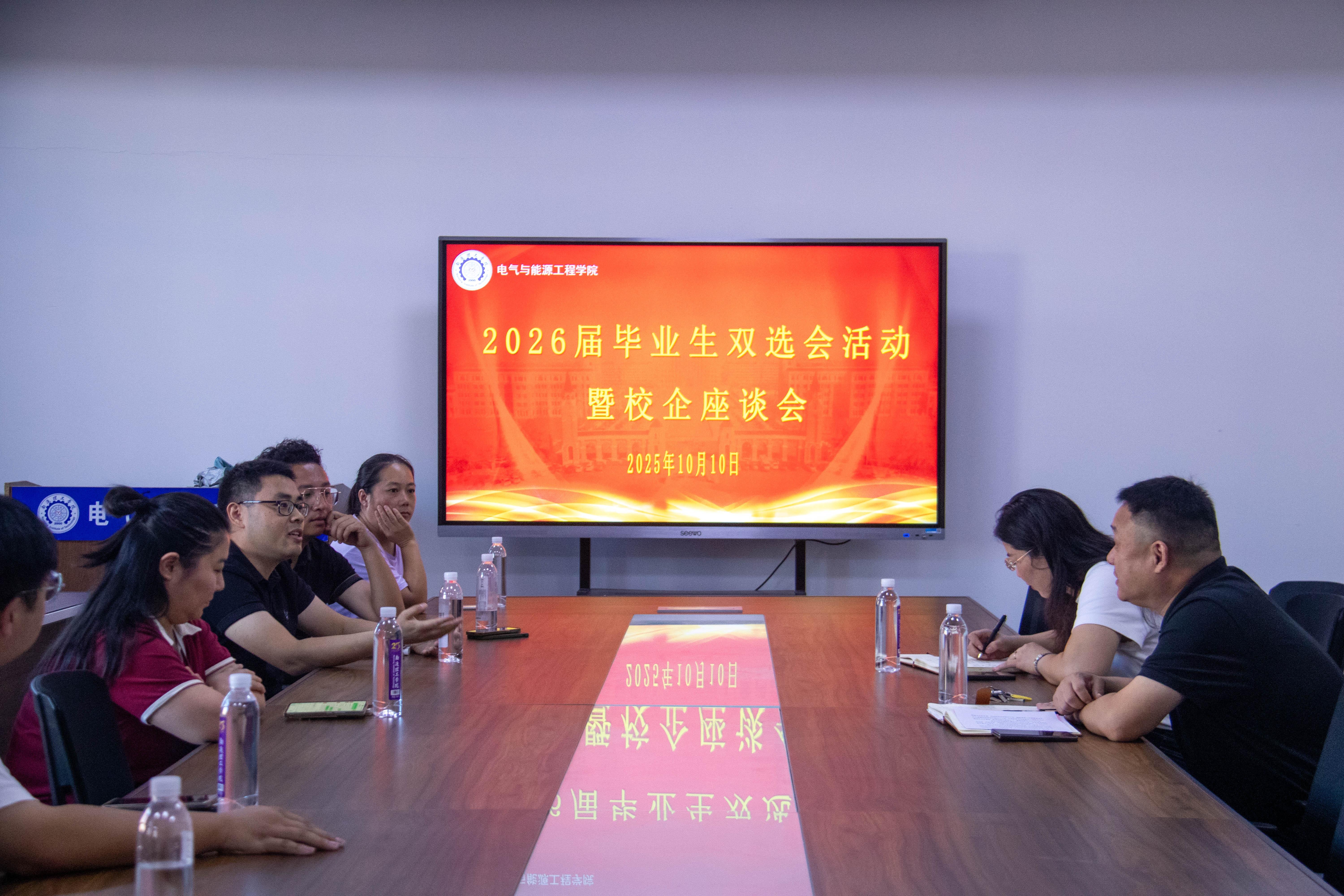 10月10日下午,电气与能源工程学院于电气楼304会议室召开2026届毕业生双选会活动暨校企座谈会。学院党总支副书记、副院长张小顺,就业指导办公室主任张优美参会,校企双方围绕岗位供给、毕业生情况、职业发展等核心议题深入交流。