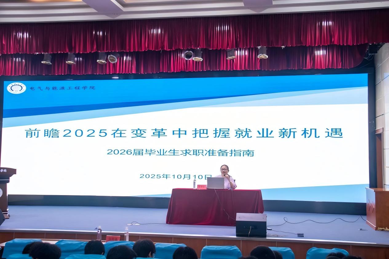 为帮助2026届毕业生精准洞察就业趋势、提前规划职业生涯,2025年10月10日,电气与能源工程学院在科技楼报告厅成功举办“前瞻 2025 在变革中把握就业新机遇 ——2026 届毕业生求职准备指南” 主题讲座,特邀江苏涵润汽车电子有限公司人事经理——学院企业班主任陈晓星担任主讲人。学院就业指导办公室主任张优美、2026届毕业生参加活动。