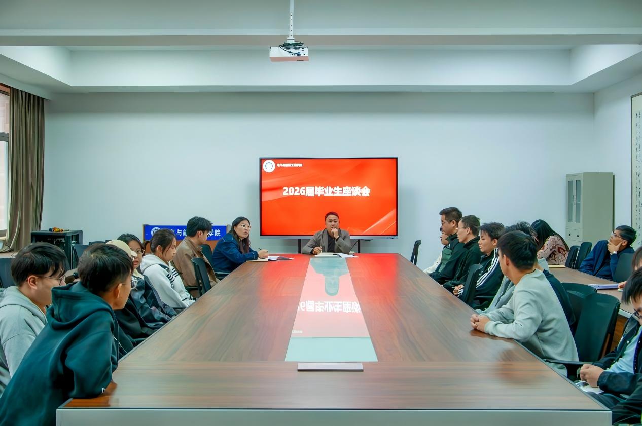 电气与能源工程学院于10月21日下午在电气楼304会议室召开2026届毕业生座谈会,旨在帮助毕业生解决求职过程中的疑惑和困难。学院党总支副书记、副院长张小顺,就业指导办公室主任张优美,毕业班辅导员周红霞、韦广中老师以及2026届求职困难学生、少数民族学生等毕业生代表参加会议。