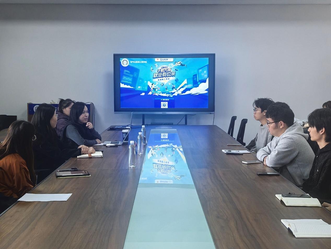 2025年10月24日下午,电气与能源工程学院于电气楼304举办“AI赋能求职”模拟面试指导交流会。活动邀请了智联招聘品牌部总监——学院企业班主任邓春玲指导交流。学院党总支副书记、副院长张小顺,就业指导办公室主任张优美,2025届毕业生代表参加活动。