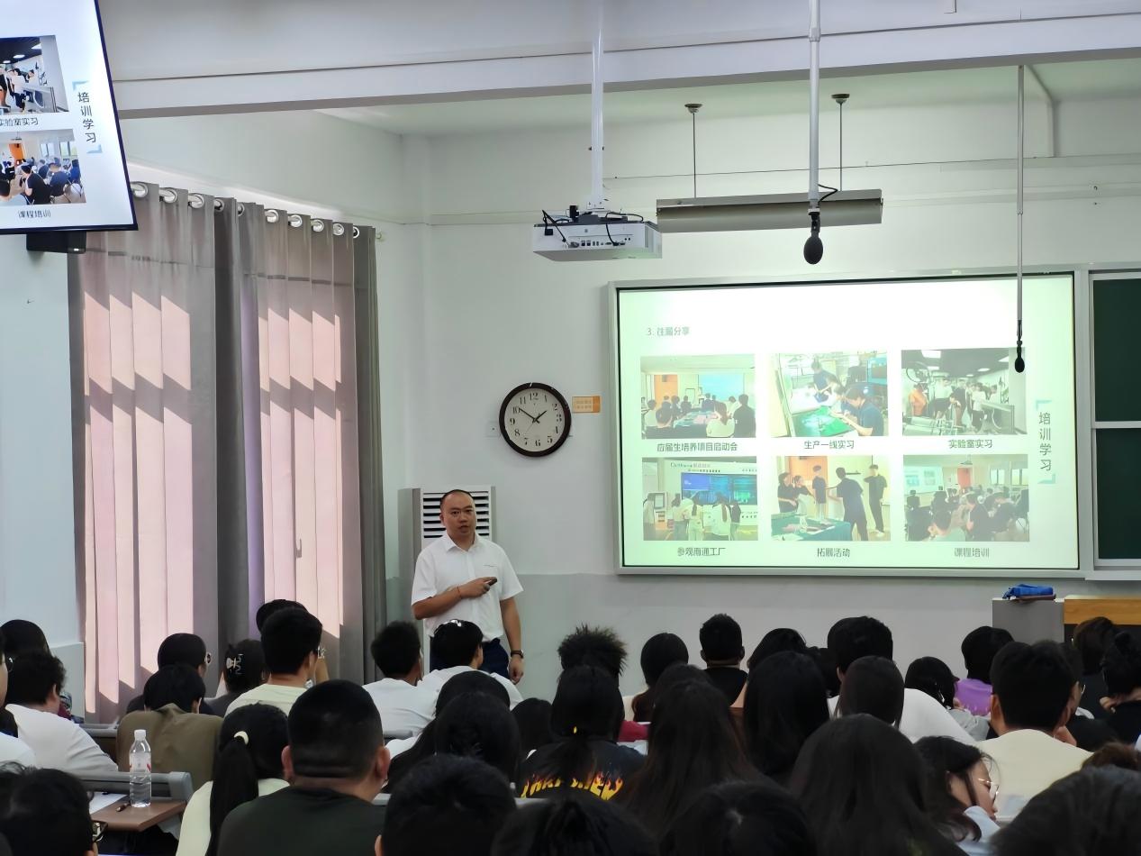 宣讲会上,李旭鹏围绕企业核心概况展开介绍,清晰地阐述了公司的成立背景、行业定位与发展规模,并通过具体数据展示了公司近年来稳定的销售额与市场竞争力。随后,他聚焦学生最关心的薪资待遇板块,详细讲解了岗位薪酬结构、福利保障体系及职业发展通道。