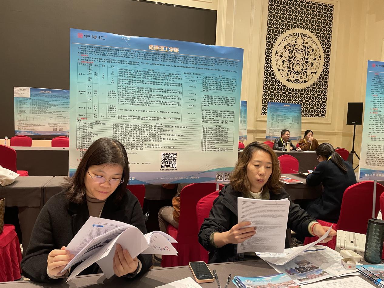 本次博士专场招聘会吸引了众多来自中国科学技术大学、合肥工业大学等知名高校的优秀青年人才。招聘会现场,南通理工学院展位前咨询者络绎不绝。党委书记江应中与应聘博士们进行交流,向他们介绍了学校的办学愿景、发展机遇以及南通市的区位优势和发展潜力,深入了解他们的研究方向和职业规划,诚挚邀请他们加入南通理工学院。