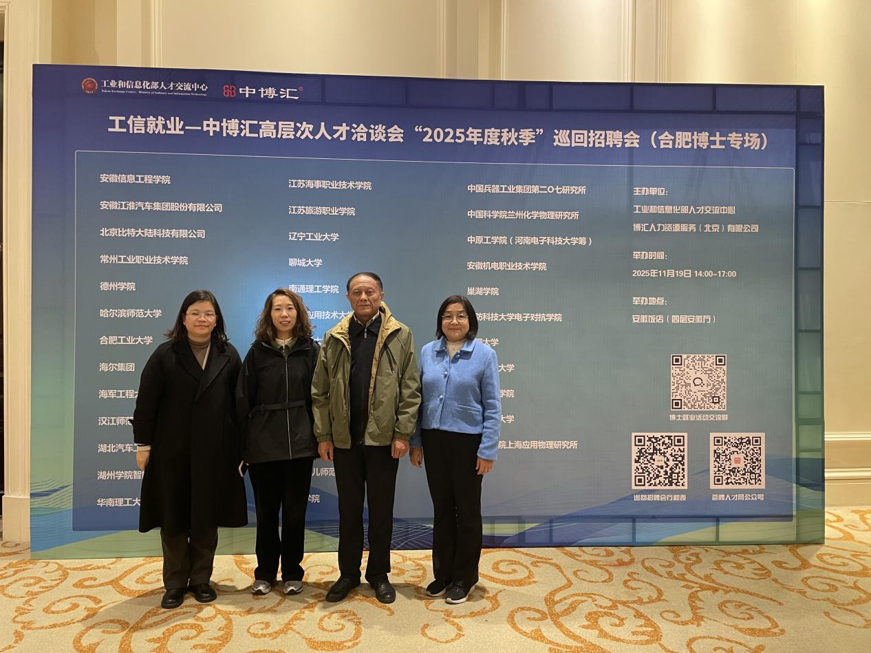 为加速推进高水平师资队伍建设,提高学校整体办学水平,11月19日,学校党委书记江应中带领人事处副处长戴丽、电气与能源工程学院副院长卢卫萍及电气与能源工程学院招聘工作组成员,前往安徽省合肥市参加高层次人才洽谈会“2025年度秋季”巡回招聘会(合肥专场)。
