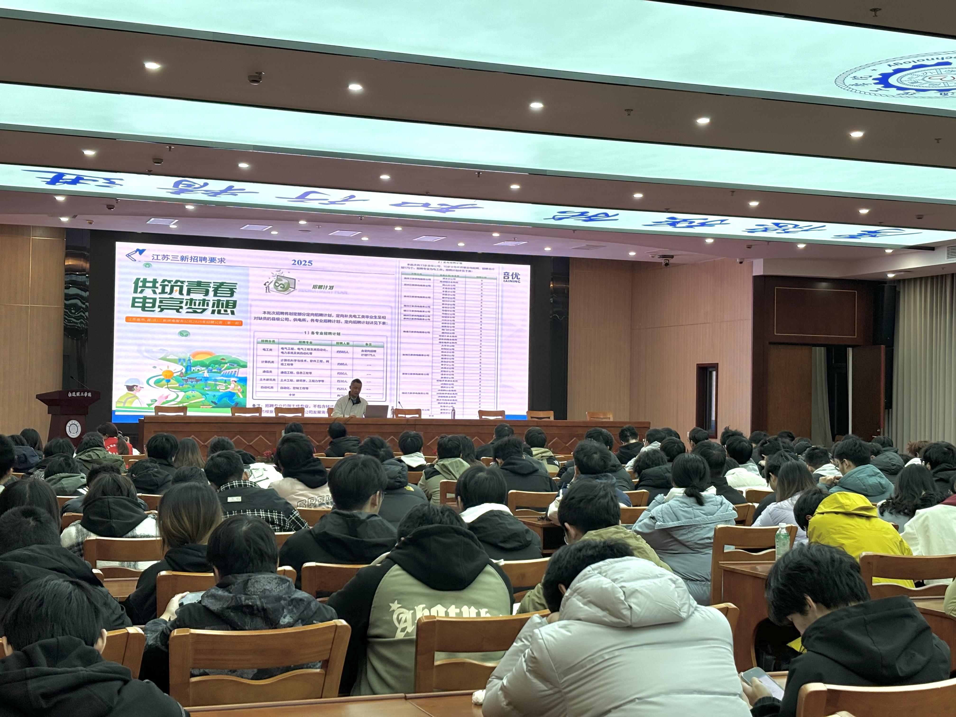 讲座中,国网三新报告指导何老师结合多年国网招聘培训经验及2024年最新招聘政策动态,以“精准报考、科学备考”为核心,围绕四大关键模块展开深度讲解:一是系统分析“为何选择江苏三新供电”,从行业前景、地域优势等维度解读就业价值;二是详细拆解报考条件与硬性要求,明确学历、专业适配标准及资格证书门槛;三是客观解读薪资待遇与职业发展路径;四是全面梳理考试流程与备考策略,结合近年招聘缩招趋势,提出优先冲刺第一批考试的科学建议,尽量规避与专业课学习、考研复习的时间冲突。