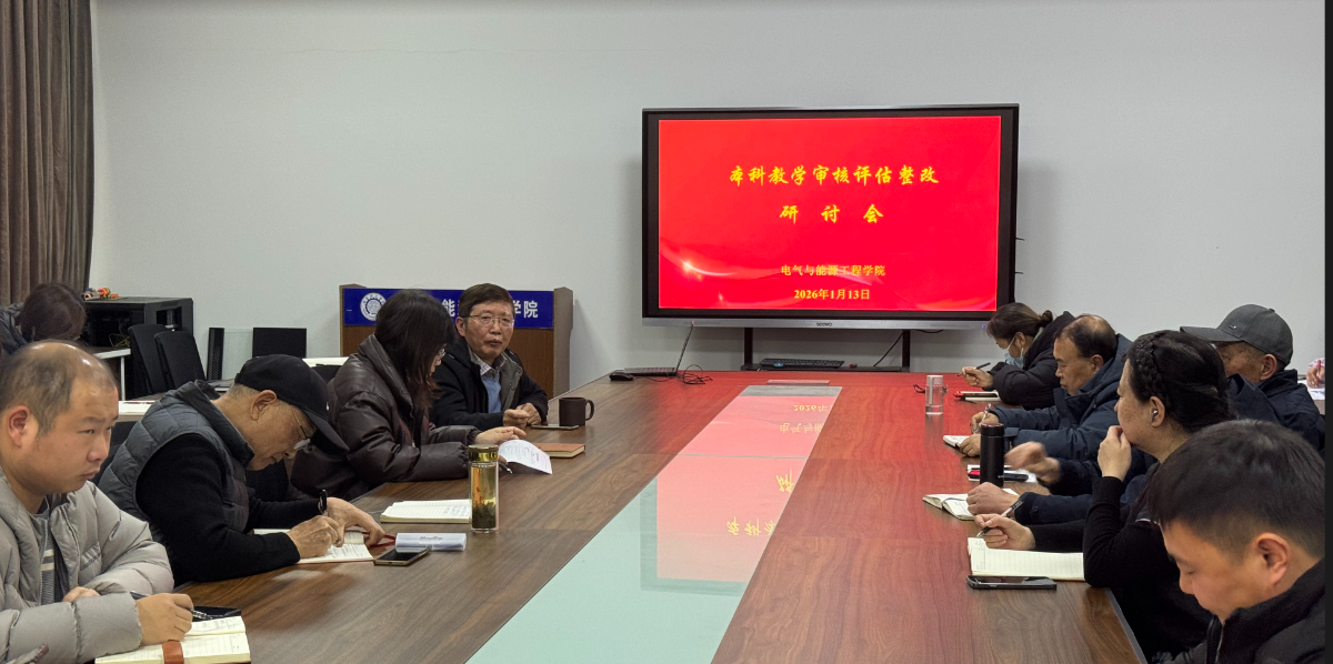 为全面落实学校本科教学审核评估整改工作要求,持续提升人才培养质量,2026年1月13日下午,电气与能源工程学院召开本科教学审核评估整改专题研讨会。学院领导班子、全体专任教师参会,围绕评估反馈的问题,明确整改方向与实践路径。