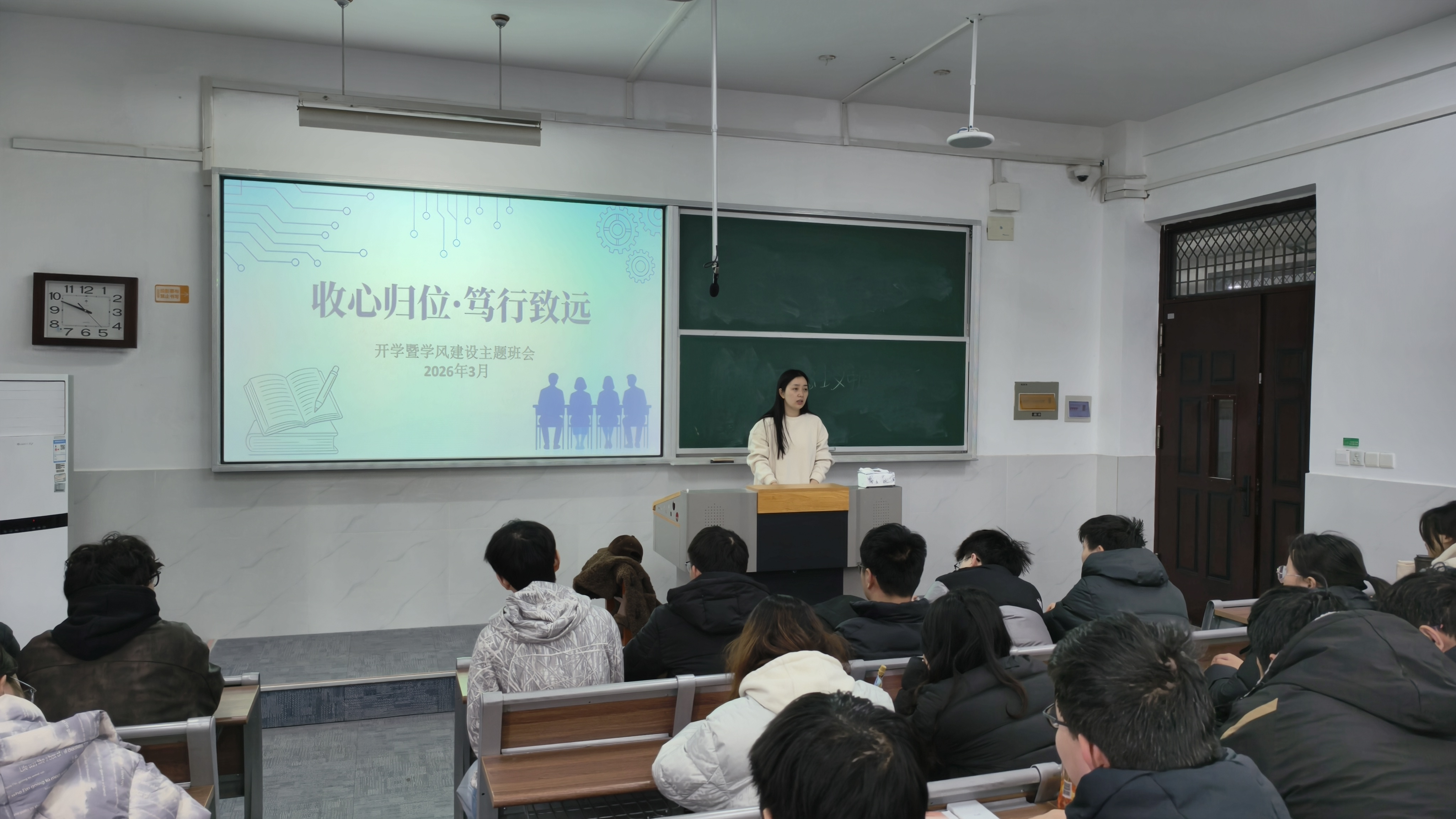大二年级聚焦学风夯实与习惯养成核心目标,围绕课堂礼仪规范、日常纪律要求、专业基础筑牢三大维度开展主题班会。班会明确课堂“手机入袋”、课前十分钟到班就位等要求,着力营造专注高效的课堂氛围。辅导员结合大二上学期学业数据,通报学科挂科情况,督促重修学生紧抓备考;同时聚焦专业能力培养,强调电路基础、单片机等核心课程的学习重点,要求学生扎实完成实验实操环节,稳步筑牢专业基础根基。