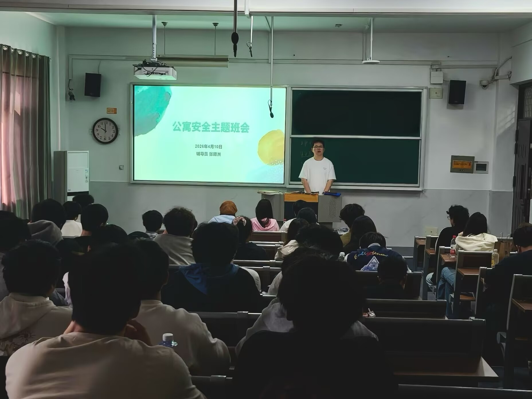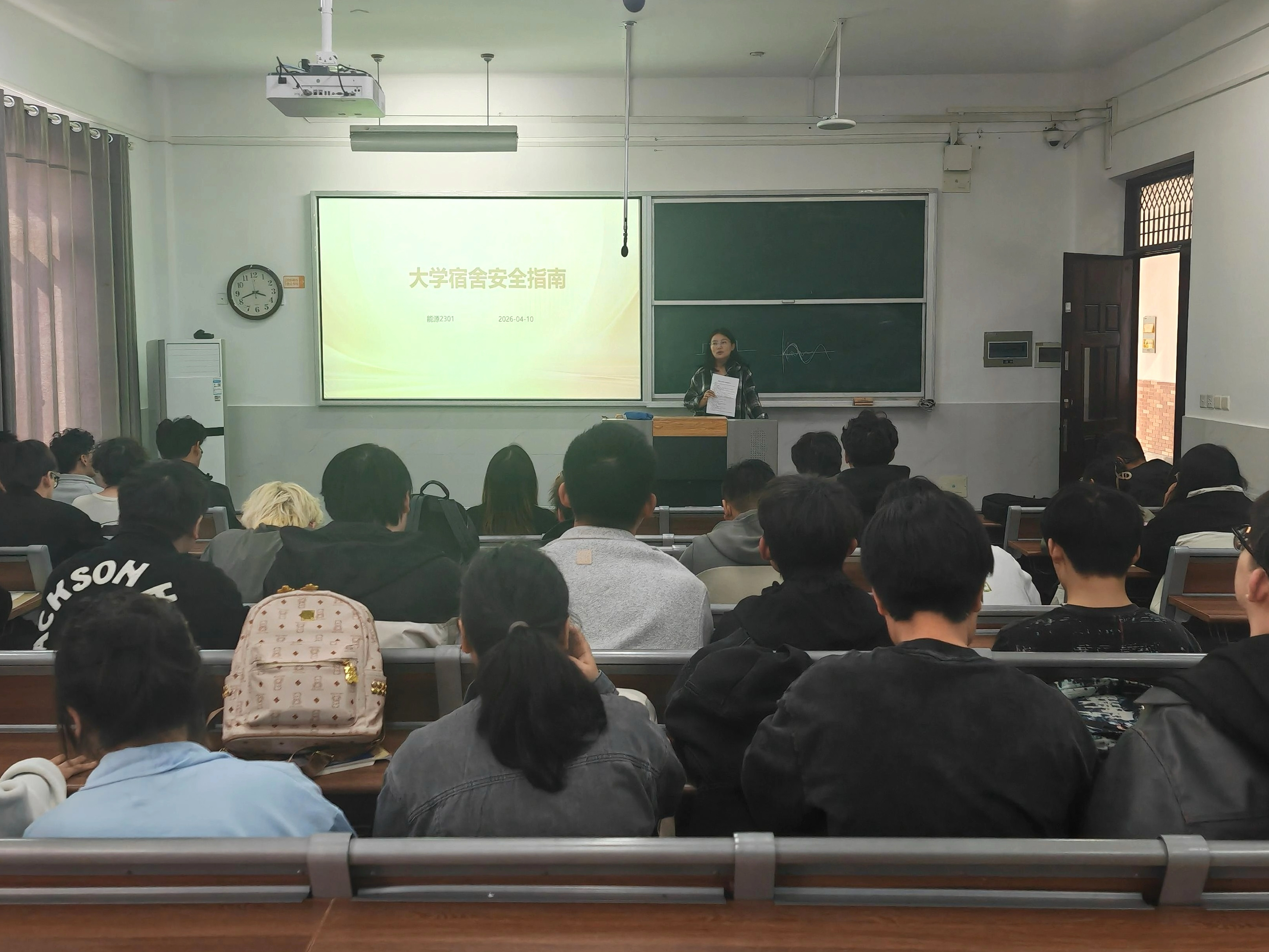 班会上,各班辅导员围绕消防安全、用电规范、住宿管理、公共秩序、应急处置五大核心内容展开详细讲解。重点强调严禁在宿舍内吸烟、使用明火与违规电器,严禁私拉乱接电线、存放易燃易爆物品,禁止电瓶车电池进入公寓等关键要求;提醒学生妥善保管个人财物,遵守归寝制度,不私自留宿外来人员,共同维护宿舍安静整洁的环境。