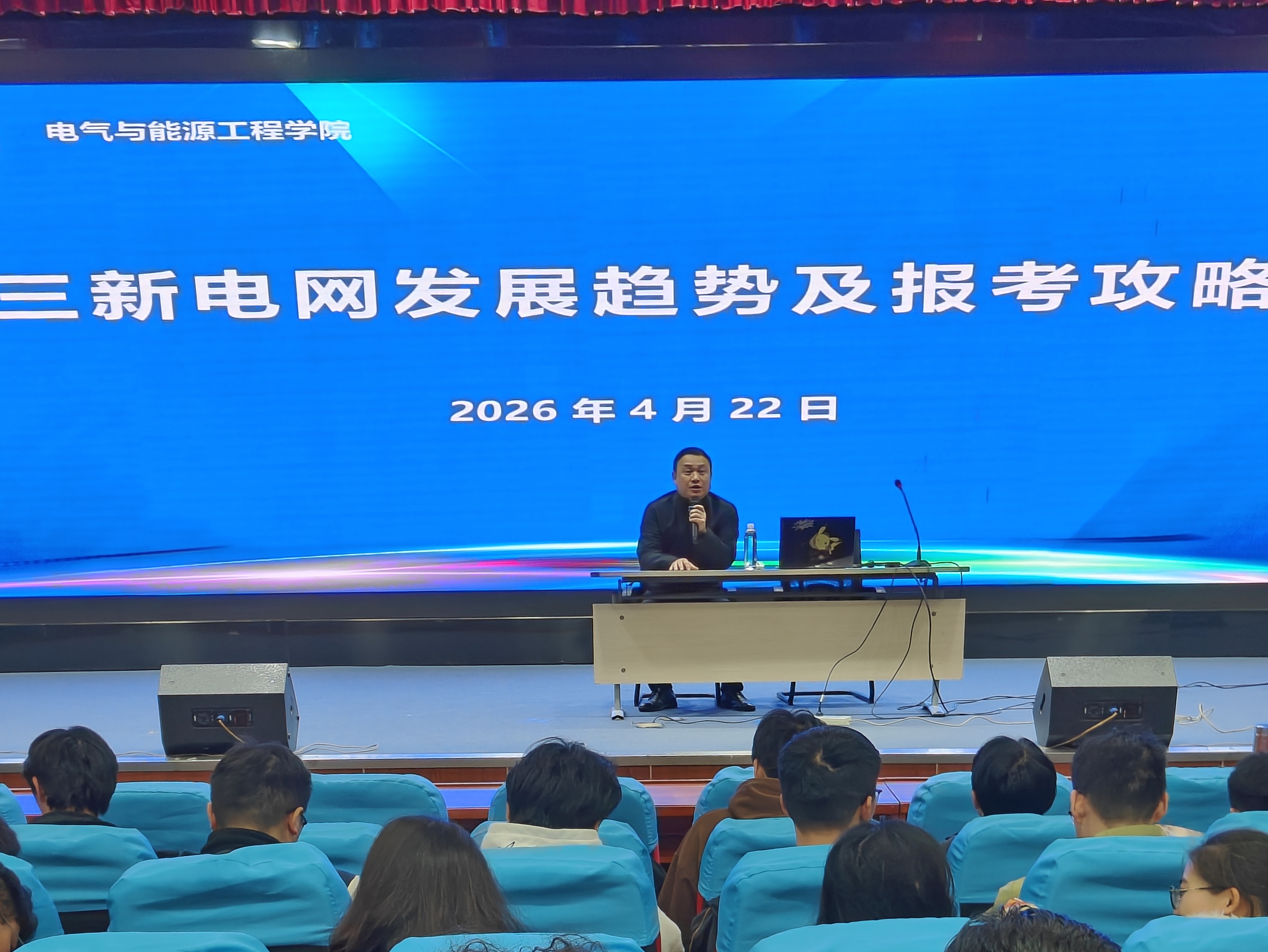 为进一步拓宽就业渠道,精准对接国家电网及江苏三新供电服务公司人才需求,4月22日晚,电气与能源工程学院在学校小礼堂成功举办国家电网报考专题讲座。学院党总支副书记、副院长张小顺主持会议,宏湃培优资深讲师何老师担任主讲,学院相关辅导员及各年级学生代表共同参加本次活动。