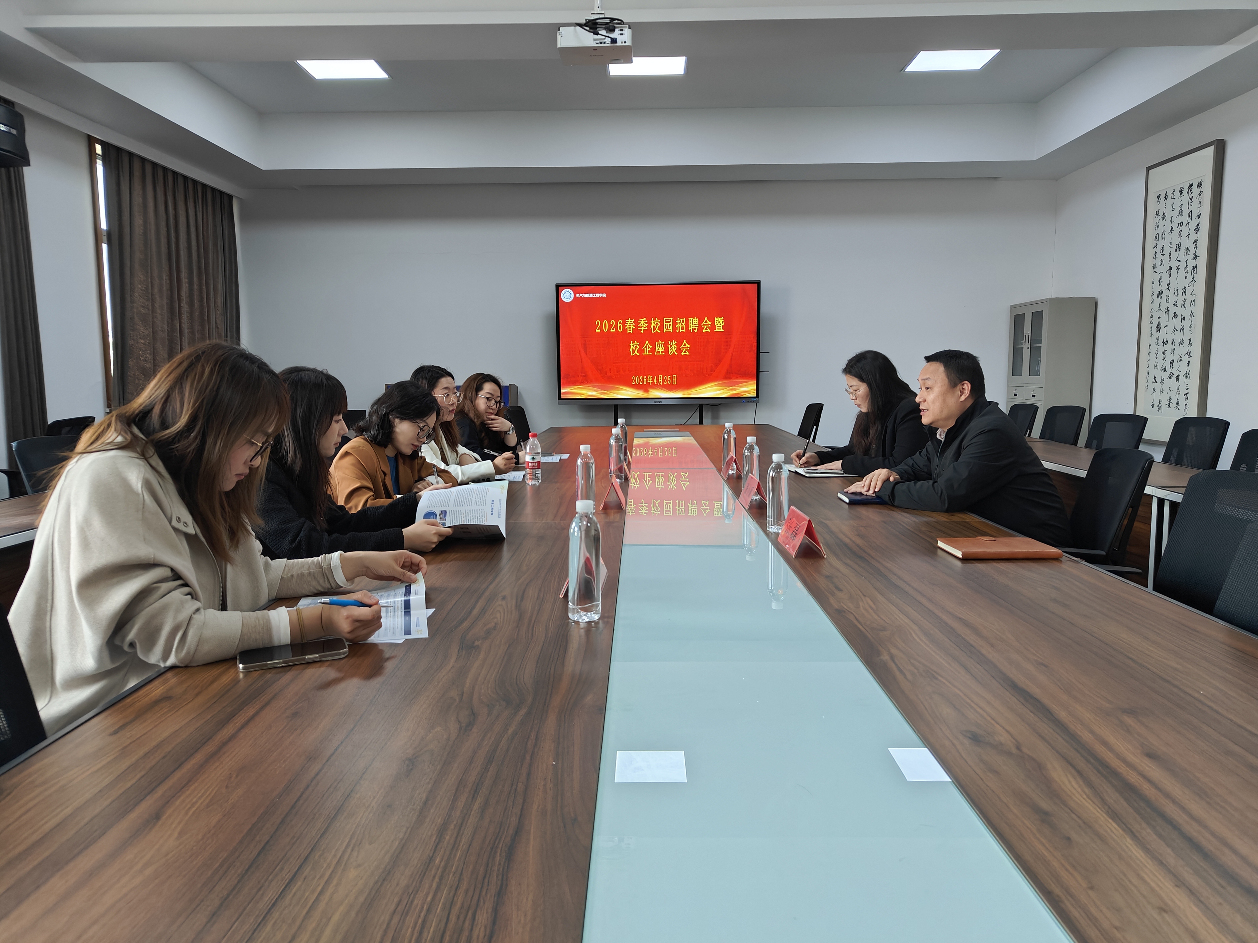 座谈会上,张小顺对企业嘉宾的到来表示热烈欢迎,并介绍了学院专业建设、人才培养及2026届毕业生情况,希望以此次活动为契机,深化校企在人才培养、实习就业等方面的合作,推动毕业生高质量充分就业。企业代表围绕行业发展趋势、岗位需求标准、人才技能要求等内容展开交流,重点介绍了企业主营业务、招聘岗位及发展前景,并详细介绍了本次招聘会的用工需求。校企双方就人才招聘、校企协作育人等方面达成初步合作意向。